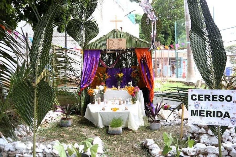 Cada altar mostrará los elementos tradicionales del Janal Pixán, como flores, velas, fotografías, cruces verdes, dulces y los platillos típicos como el pib o mucbipollo, que representan la convivencia entre la vida y la muerte desde la cosmovisión maya.