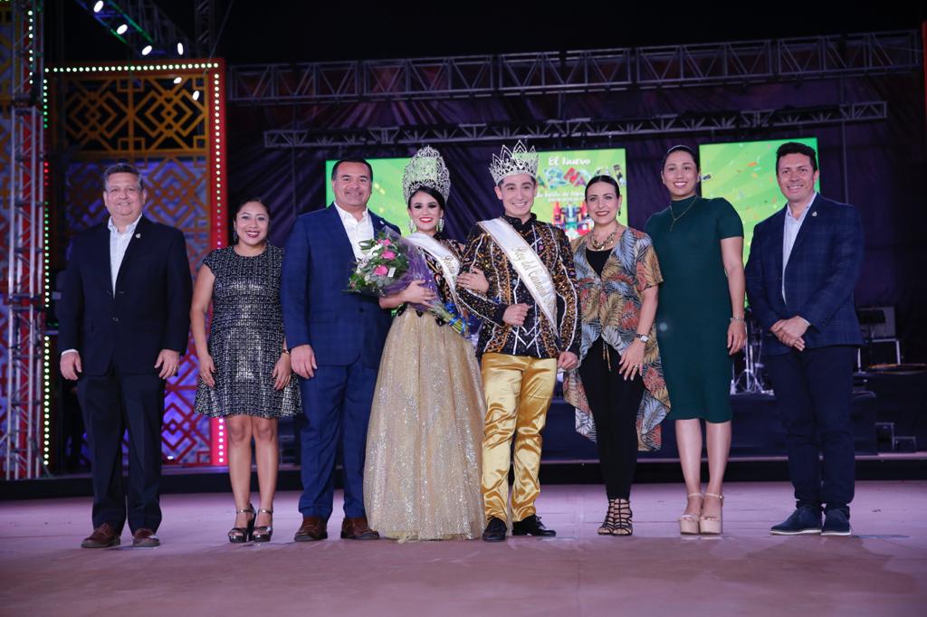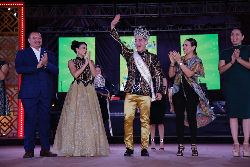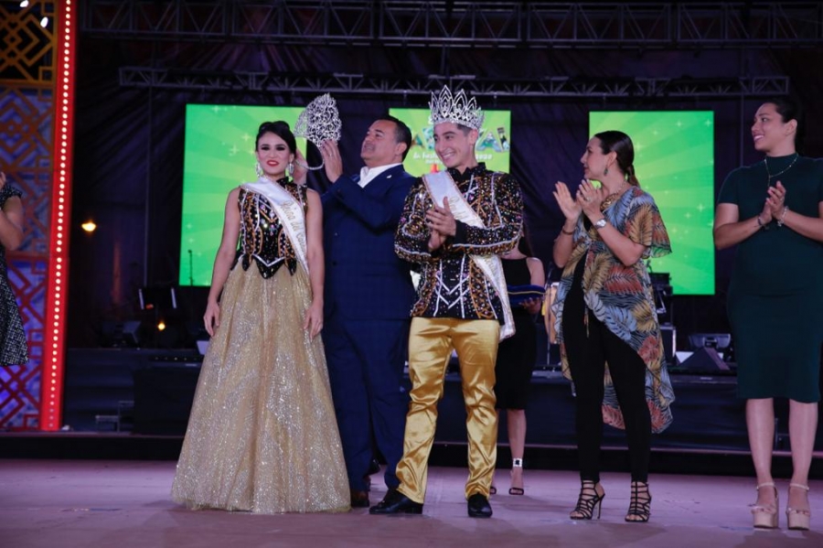 Los soberanos Paola Novelo Bojórquez “Paola I” e Isaac Alonzo Puerto “Isaac I” recibieron sus coronas de manos del alcalde Renán Barrera y de su esposa Diana Castillo Laviada, presidenta del DIF Municipal.