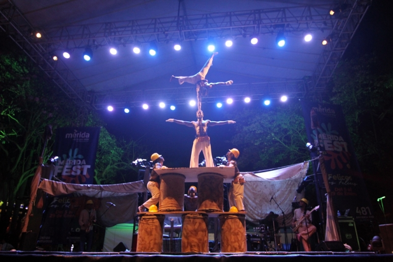 Noche de acrobacias, música, danza y un espectáculo que hizo viajar a una aldea africana se vivió en el #MéridaFest2023 con el espectáculo “Afrique en Cirque”. Los acróbatas de la Compañía Kalabanté, de Canadá, se movían al ritmo de la música, mostrando energía, flexibilidad e intensidad en el Remate del Paseo de Montejo.