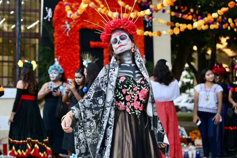 La explanada del Centro Estatal de Bellas Artes (CEBA) la Secretaría de Educación del Gobierno del Estado de Yucatán (Segey), fue el escenario ideal para reunir el talento de los estudiantes de danza folclórica mexicana y española, quienes protagonizaron un desfile y montaje dancístico alusivo al Día de Muertos.