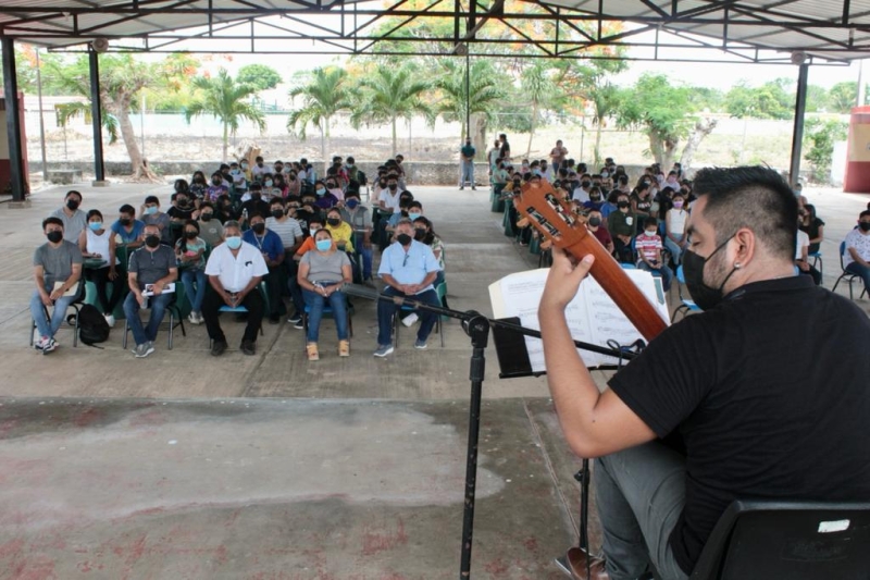 La peculiar pieza "Guárdame las vacas", de Luis de Narváez, interpretada por el guitarrista, Jorge Coronel, alumno de la Escuela Superior de Artes de Yucatán (ESAY), fue uno de los temas que cautivó a América Camila Morales Sosa, quien presenció el concierto didáctico que ofreció en la Secundaria Técnica 51, ubicada en Suma de Hidalgo, como parte de las 151 actividades que se realizarán en diversos municipios.