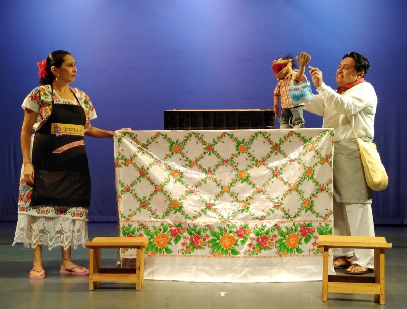 Niñas, niños y jóvenes interactuaron con Alfonsito y otros personajes del montaje Cuentos de don Domingo, que presentó la compañía Titeradas en el encuentro Diálogo de títeres, en el último día del ciclo Teatralidades: reflexionando la escena.