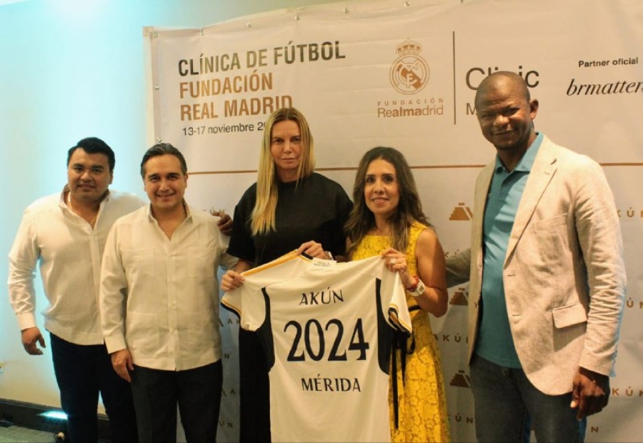 Encabezada por Julio César Santos, ex jugador merengue, se ofreció una rueda de prensa en el Hotel Hyatt Regency de Mérida, en la que el brasileño y Edna Miranda Rodríguez, integrante del Consejo Directivo de Akún México, firmaron el convenio que hace oficial el vínculo por el cual esta ciudad será sede de la clínica de la Fundación Real Madrid.