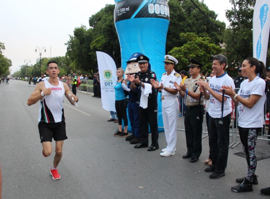 Carlos Saenz Castillo, director del IDEY y el comisario Julio Martínez Arredondo, coordinador estatal de la Policía Federal, dieron la salida de la carrera al disparar en forma conjunta, acompañados por Mario Romero Escalante, director de la Policía Municipal en representación del alcalde Renán Barrera Concha; el Mayor Israel Herrera Montaño en representación de la X Región Militar; Jesús Aguilar y Aguilar, subdirector de Deportes del Ayuntamiento de Mérida y Miriam Canul Cob, presidenta de la Asociación de Atletismo de Yucatán.