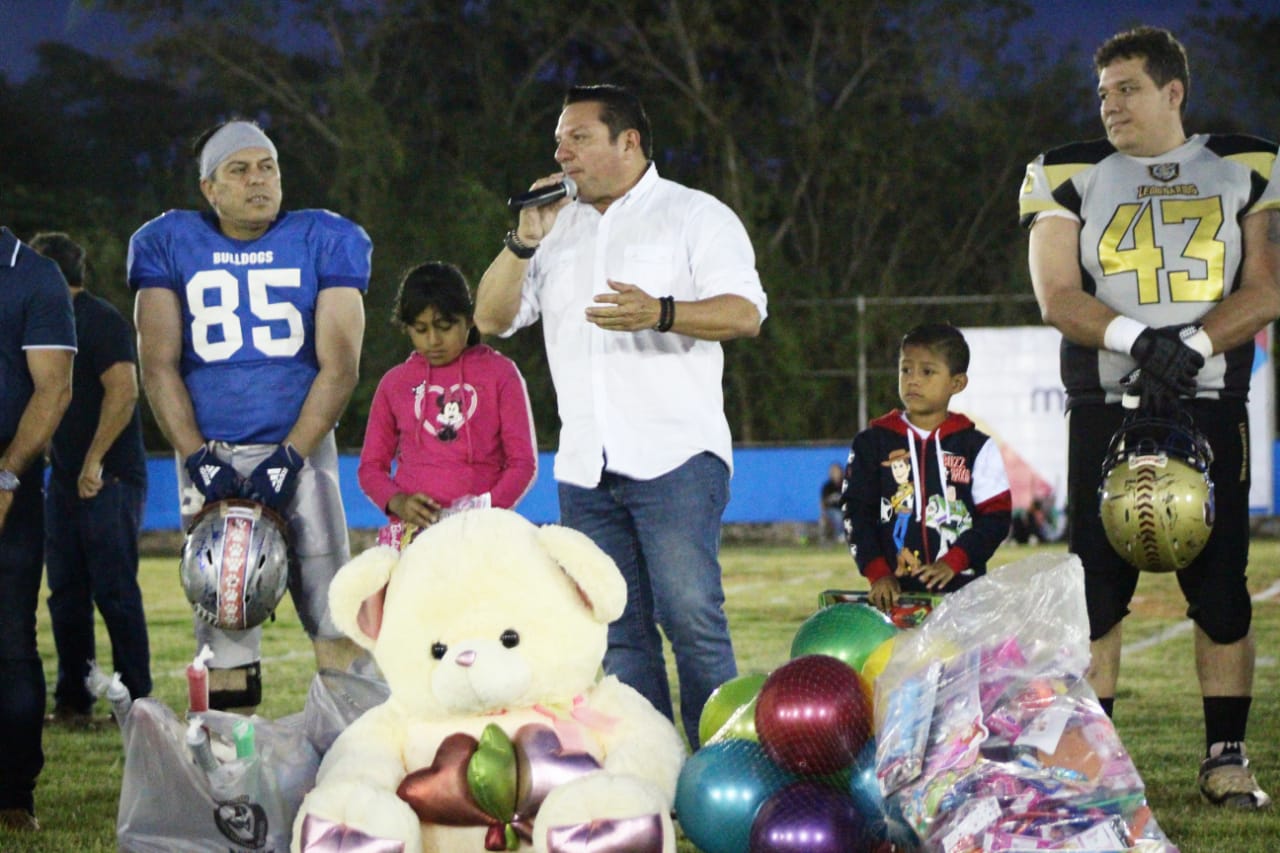 Fueron alrededor de mil 500 juguetes repartidos a pequeños de escasos recursos de Xmatkuil, Santa Cruz Palomeque, Dzununcán, San Antonio Tzacalá, Petac, Yaxnic, Texán Cámara y Molas, en un evento en el que varios de los asistentes pudieron disfrutar por primera ocasión de un encuentro de fútbol americano.