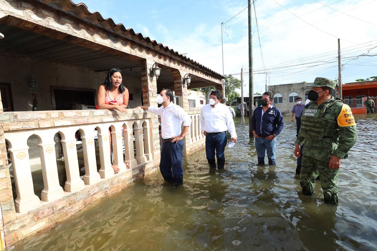 Acompañado del titular de la Secretaría de Desarrollo Social (Sedesol), Roger Torres Peniche y el coronel Gustavo Caratachea Esparza, comandante del 11 Batallón de Infantería, Vila Dosal visitó casa por casa a los vecinos afectados en el fraccionamiento y constató los daños, como la pérdida de artículos electrodomésticos, vehículos automotores y daños en las viviendas.