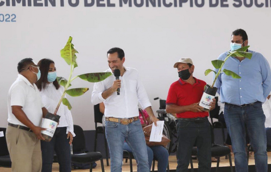 Igual, continuó con la distribución de plantas de plátano mejoradas, ideales para obtener frutos de alta calidad, lo cual brinda a los beneficiarios la oportunidad de lograr una amplia producción, incluso para exportar a países como China, en favor de su economía. Se otorgará un total de 10 mil ejemplares a 3 mil familias, para cultivo de traspatio o huerta, mil de los cuales llegaron a Sucilá.