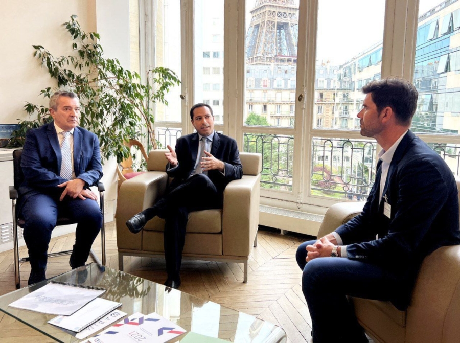 Otra empresa que se visitó fue Dassault Systèmes, líder mundial de la transformación digital en sectores como la aeronáutica, automotriz, salud, smart cities, high tech, energías, entre otras. Ahí, Vila Dosal se reunió con Jacques Beltran, vicepresidente del Sector Público y experto en seguridad europea y relaciones transatlánticas.