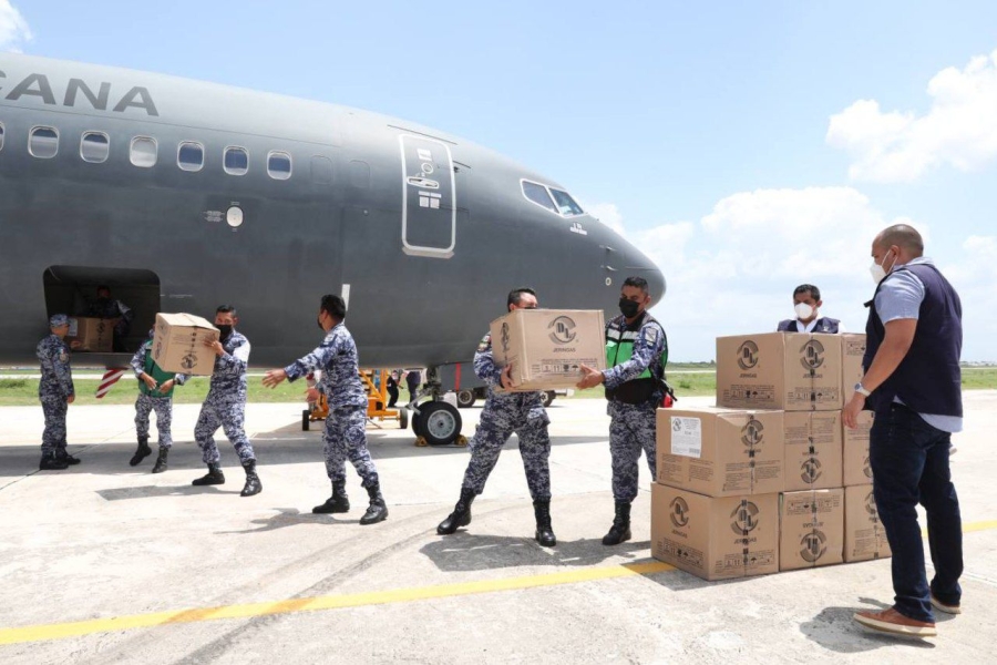 El responsable Estatal de Vacunación Universal de la SSY, Alejandro Díaz Sánchez acudió a la Base Aérea Militar (BAM) 8 para supervisar la llegada de este cargamento, que tocó territorio a las 13:51 horas, a bordo de una aeronave Boeing de la Fuerza Aérea Mexicana, matrícula 3527, proveniente de la Ciudad de México.