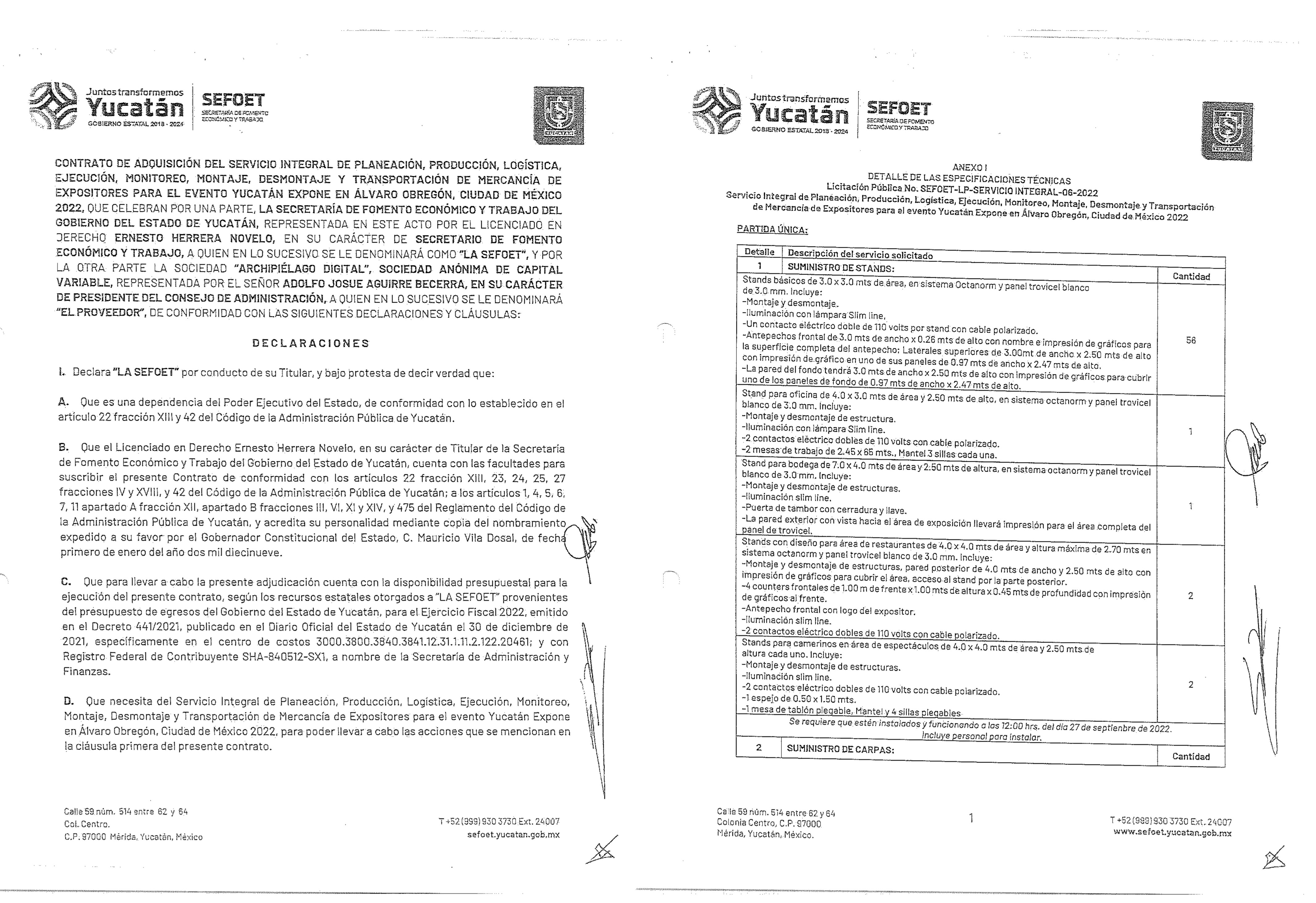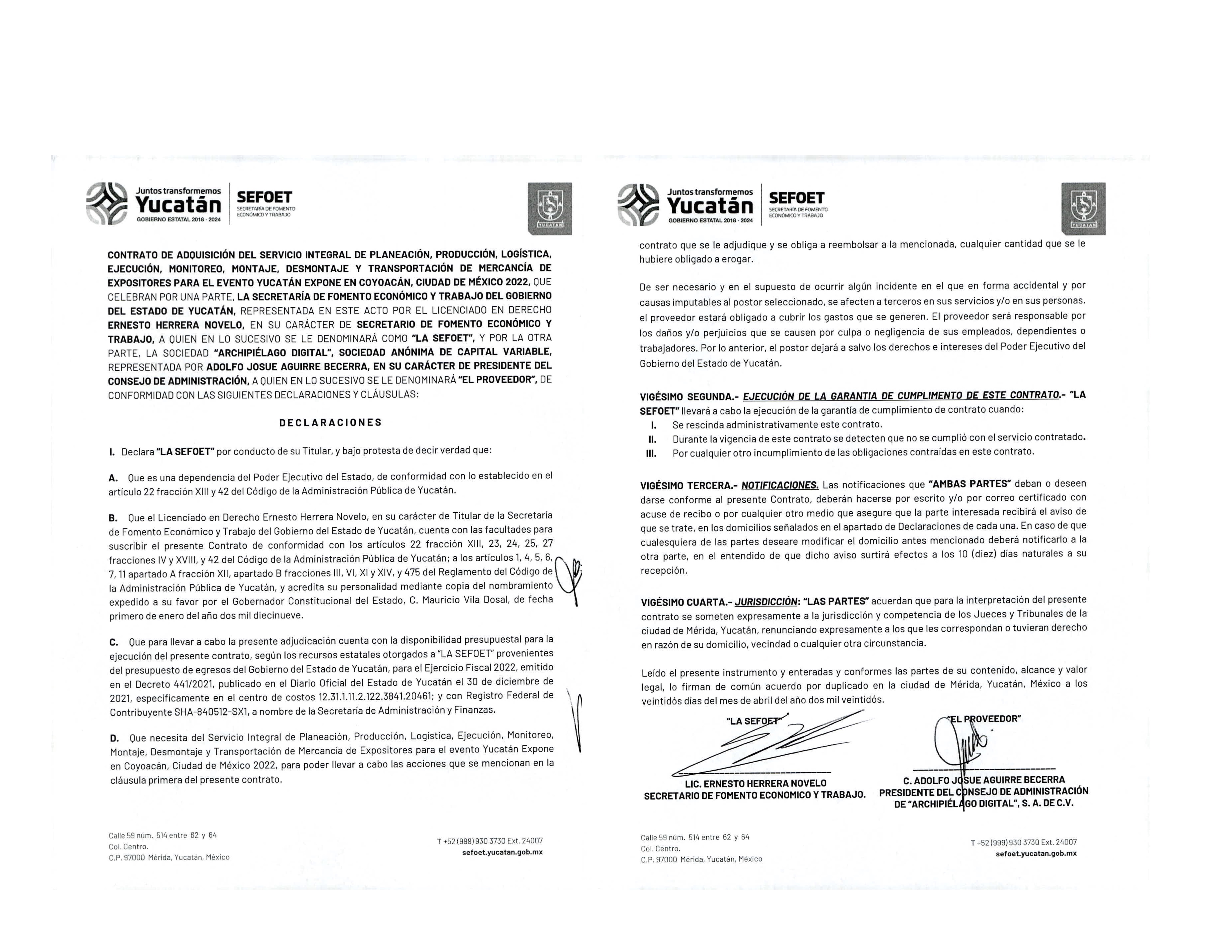 El segundo evento del “Vila tour” con dinero de los yucatecos, fue en la Ciudad de México, en la alcaldía de Coyoacán para lo cual se signó el convenio SEFOET-LP-SERVICIO INTEGRAL -02-2022 con la empresa Archipiélago Digital, la cual la tuvo a su cargo planeación, producción, logística, ejecución, monitoreo, montaje desmontaje y transportación de mercancía al evento “Yucatán Expone”, por la no despreciable cantidad de 3 millones 551 mil 128.88 pesos.