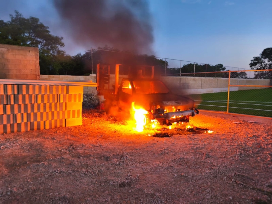 El hecho ocurrió alrededor de las 04:58 horas. Tras recibir un reporte ciudadano, elementos de la Dirección de Seguridad Pública y Vialidad de Umán se trasladaron al lugar, donde confirmaron que una camioneta Nissan modelo 2008, con placas del estado de Quintana Roo, ardía en llamas.