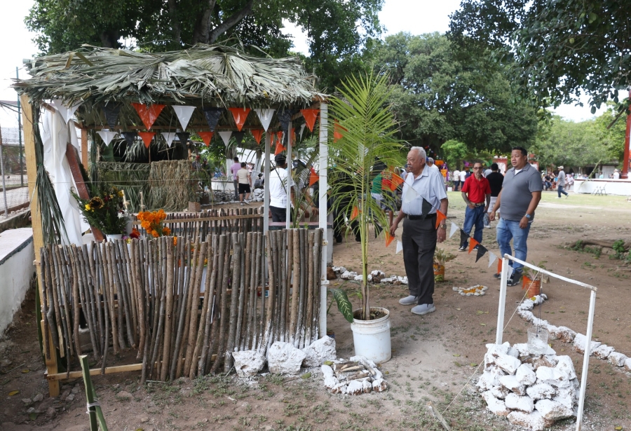 Las ofrendas incluyeron flores de temporada como el xtee o cresta de gallo, xpujuc o cosmos amarillo, amor seco y cempasúchil; además de xec de frutas, dulces típicos yucatecos y platillos tradicionales como el pib y el relleno negro. Como marca la costumbre, también se colocaron fotografías, velas, cruces y manteles blancos en honor a los seres queridos que partieron.