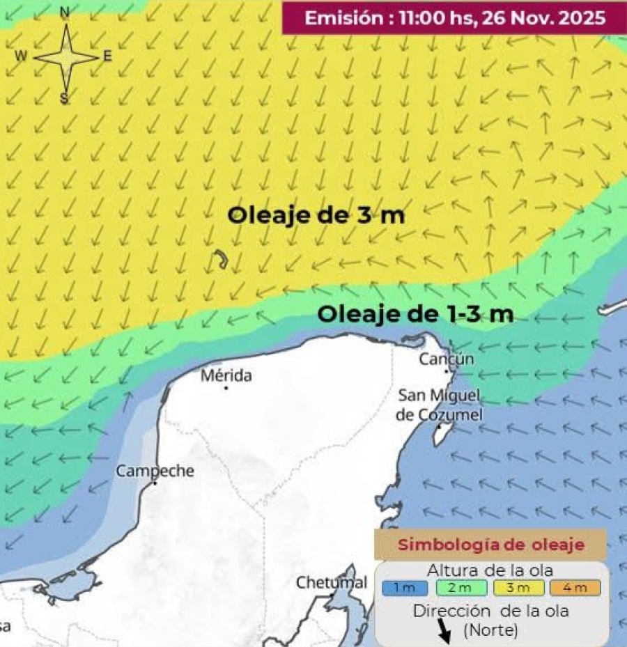De igual forma, pide extremar precauciones a la navegación por la presencia de oleaje elevado, así como la realización de actividades turísticas, recreativas y comerciales en el mary zona de playas.