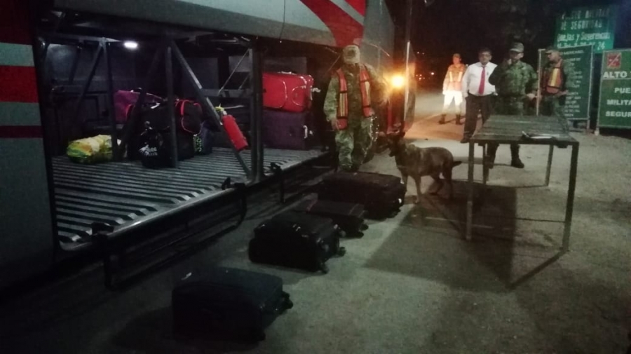 El aseguramiento de la droga que se dio pasadas las 18 horas de este domingo, en un puesto de seguridad de la Sedena, ubicada en la caseta fitosanitaria de Halachó, cuando con la ayuda del can los efectivos castrenses revisaron la unidad de ADO con número económico 0382 con placas de circulación 62HA3G del Servicio Público federal.