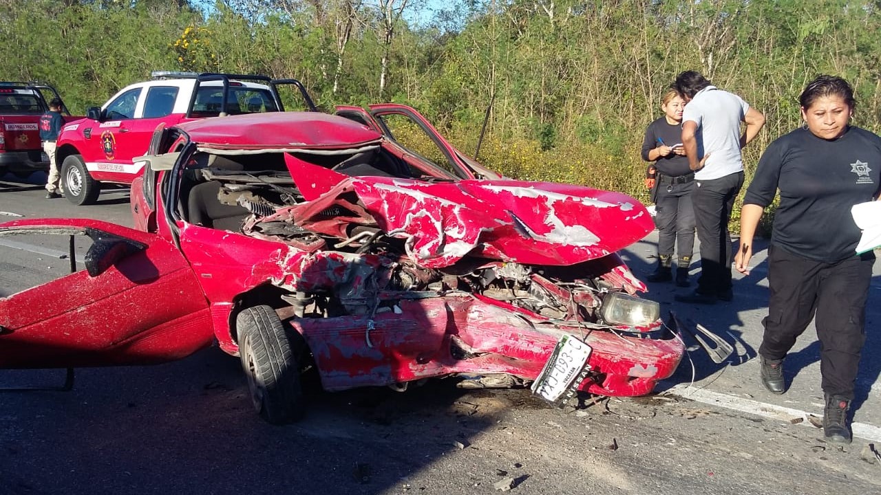 El percance sucedió alrededor de las 18:00 horas del pasado sábado en la vía Mérida-Acanceh, cuando el conductor de un Tsuru, por intentar ganar a un vehículo, giró a su izquierda para entrar a la población, sin embargo, no lo logró y fue impactado por una camioneta Toyota.
