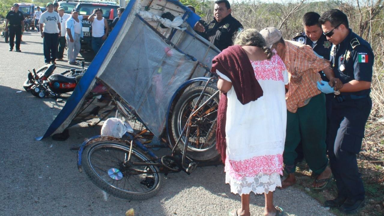 Ambos oriundos de Tetiz portaban su respectivo casco y apenas salían del poblado cuando chocaron a una pareja de adultos mayores que transportaba leña en un triciclo.