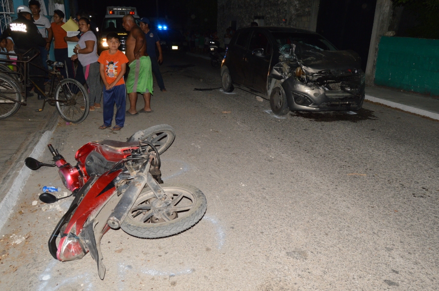 Al tratar de intentar de escapar, chocó una moto que también se encontraba estacionada. Sin embargo, a bordo iba Laura del Roció M.Y., quien iba en compañía de su hija de 10 años de edad.