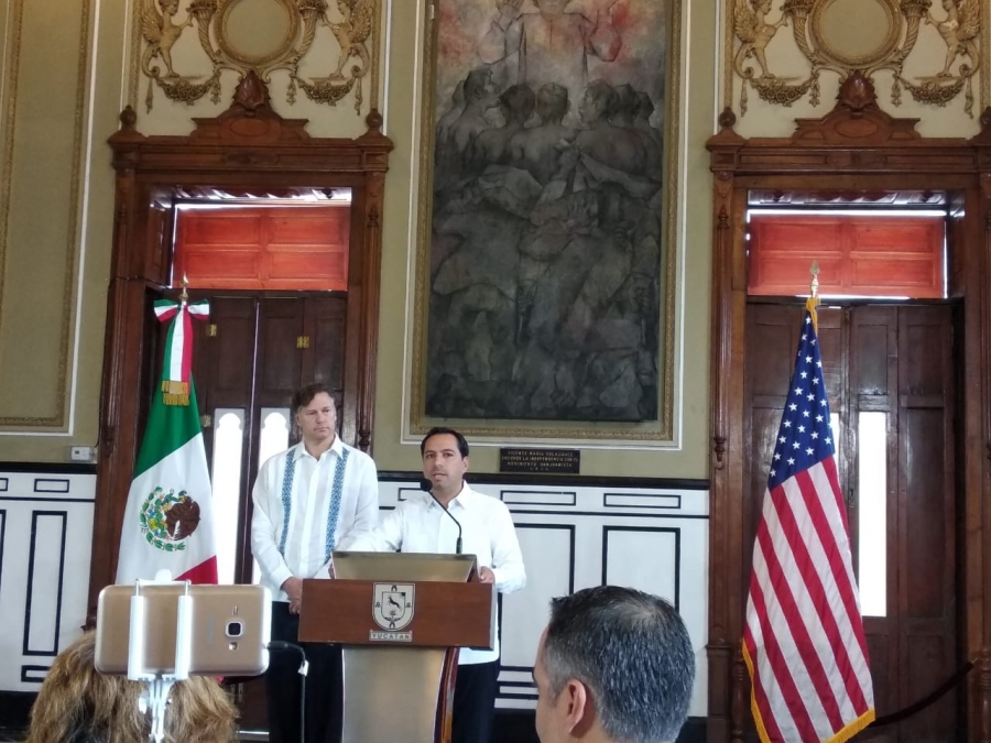 El embajador se reunió con el gobernador Mauricio Vila Dosal, en el Palacio de Gobierno y al término dio un breve mensaje a los medios de comunicación, en el que afirmó que Estados Unidos se compromete con el potencial humano y económico de la región.