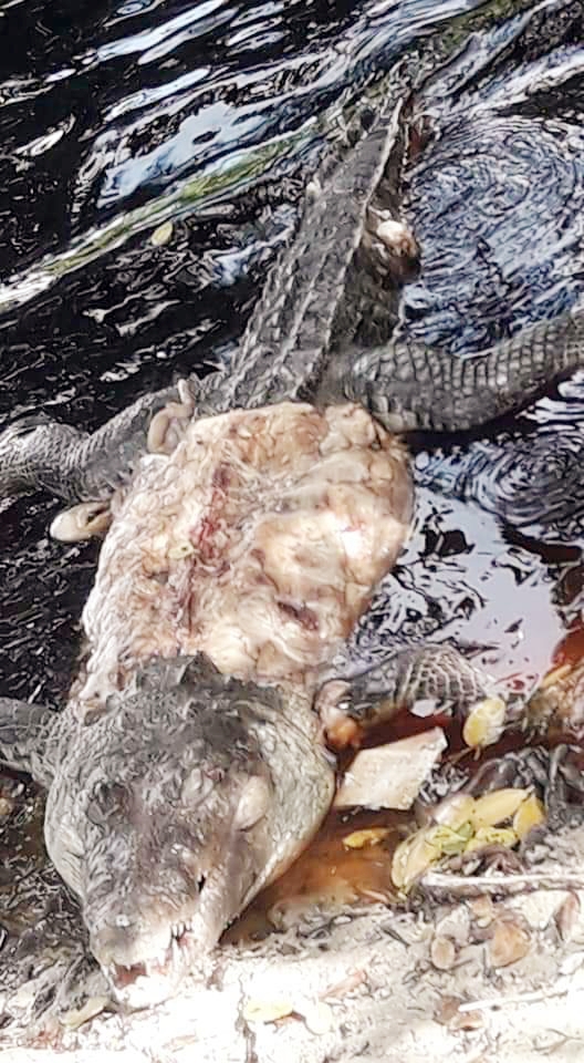 Al reptil de casi 3 metros de largo, lo sacrificaron para luego cortarle la piel del lomo y panza, probablemente la noche de ayer o madrugada de este viernes. Más tarde autoridades encargadas tomaron conocimiento para las indagatorias pues la especie está Protección Especial, NOM-059-ECOL-2001. (ACOM)