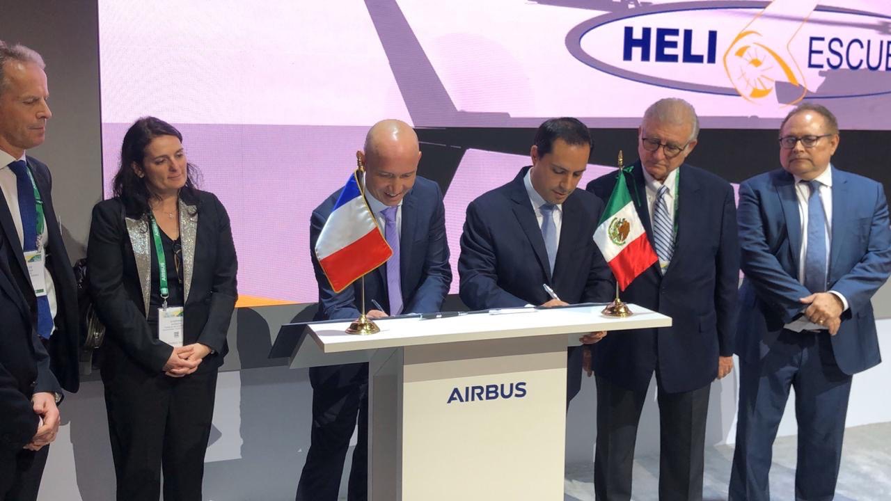 En el marco de la Heli-Expo 2020, que se desarrolla en la ciudad estadounidense de Anaheim, la muestra más grande en su tipo que reúne a más de 700 expositores y es organizada por la Asociación Internacional de Helicóptero (HAI, por sus siglas en inglés), Vila Dosal suscribió el documento junto con el director general de Airbus en México, Ricardo Capilla, y el presidente de EAM, Alfredo Velázquez Jiménez.