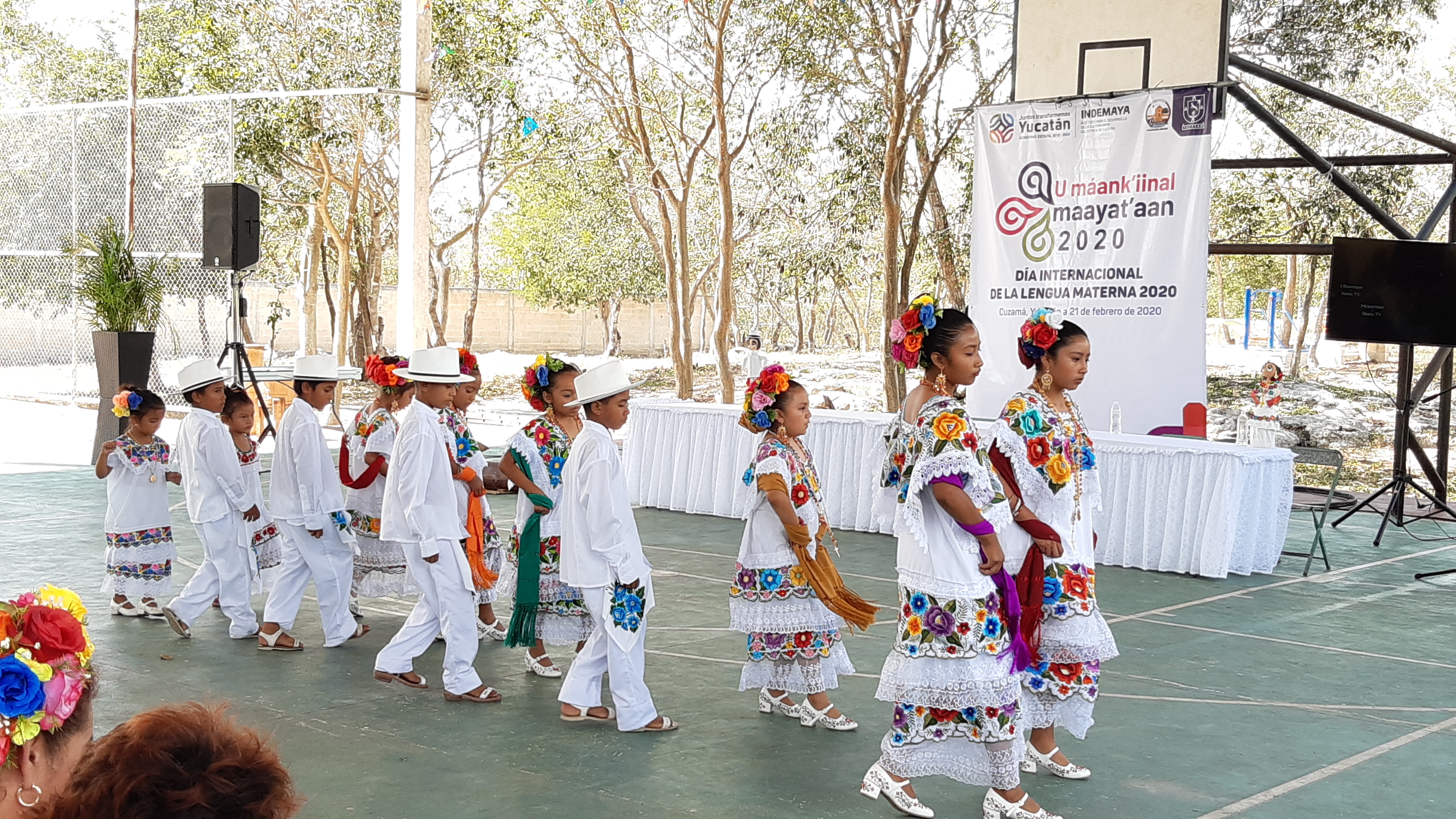La ceremonia contó con la participación del coro infantil “Túumben K’ay” de la escuela primaria matutina “Rafael Cházaro Pérez” de Kinchil, dirigido por Ildefonso May Caballero; el conjunto entonó el Himno Nacional Mexicano en lengua maya, mientras que la compositora e intérprete Maricarmen Pérez hizo lo propio con dos temas en ese idioma.