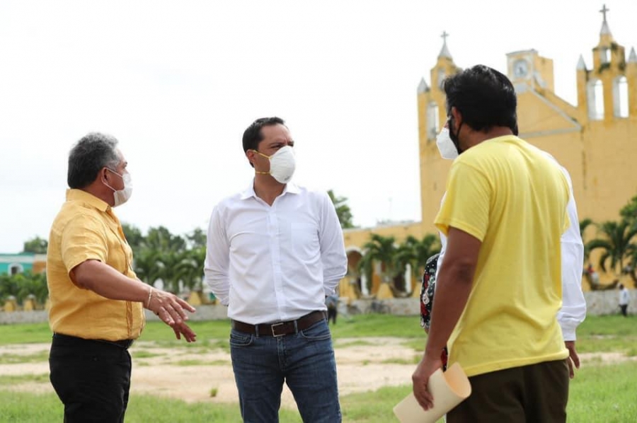 Durante una gira de trabajo por Cansahcab, Sinanché, Yaxkukul y Mocochá, Vila Dosal verificó las actividades de limpieza, desinfección, descacharrización y mejoramiento de espacios públicos que mujeres y hombres de dichas demarcaciones realizan en favor de sus comunidades y que representará para ellos una ayuda económica para recuperarse tras el paso de estos fenómenos naturales.