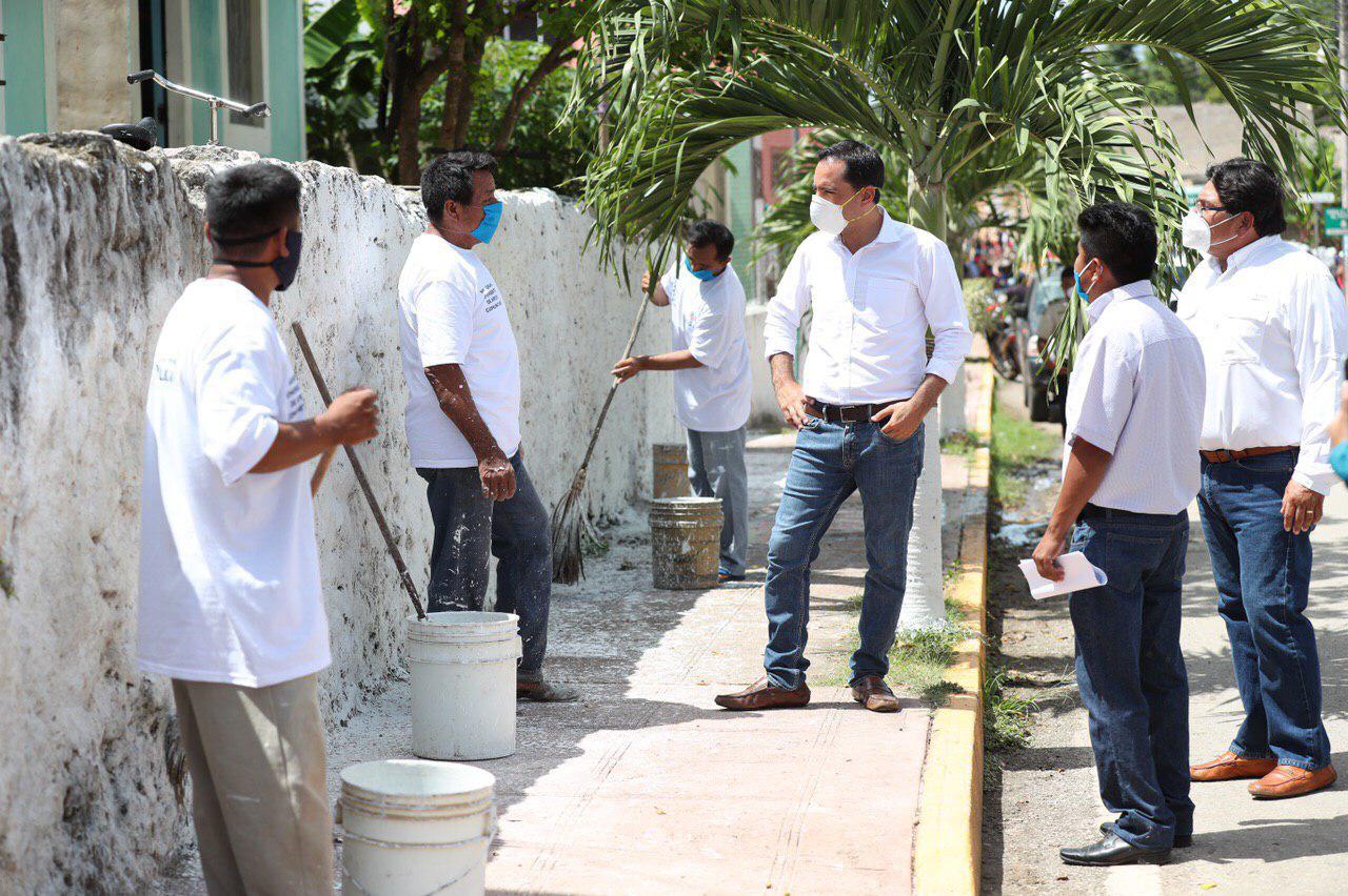 En Chikindzonot, Vila Dosal, acompañado del secretario municipal, Germán Kahuil Cahún, caminó por las calles de esta localidad, donde platicó con los beneficiarios del Programa Emergente de Apoyo Comunitario, a quienes reconoció por la contribución que realizan para mejorar su comunidad, tareas por las que a cambio reciben una ayuda económica para sostener sus hogares.