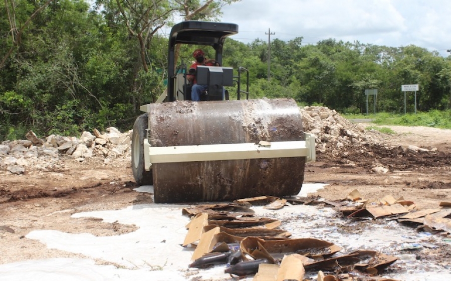 El producto fue destrozado por una aplanadora en un evento que contó con la presencia del alcalde Enrique Ayora Sosa y el director de la policía local, Jorge Robledo Rodríguez, y que incluso se transmitió en Facebook Live para que las y los vallisoletanos pudieran seguirlo.