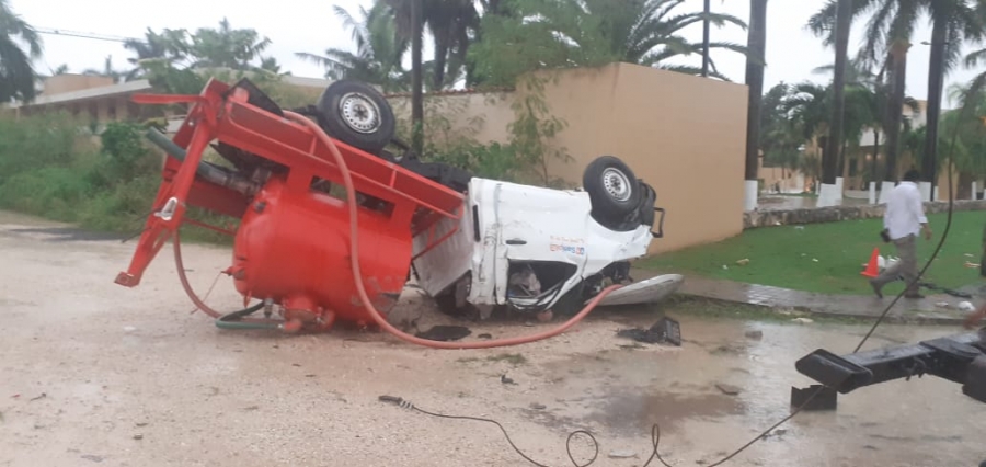 Información recabada en el lugar de los hechos establece que la pipa circulaba con dirección al municipio de Progreso, en medio de una fuerte lluvia que se dejó sentir en gran parte de la capital yucateca.