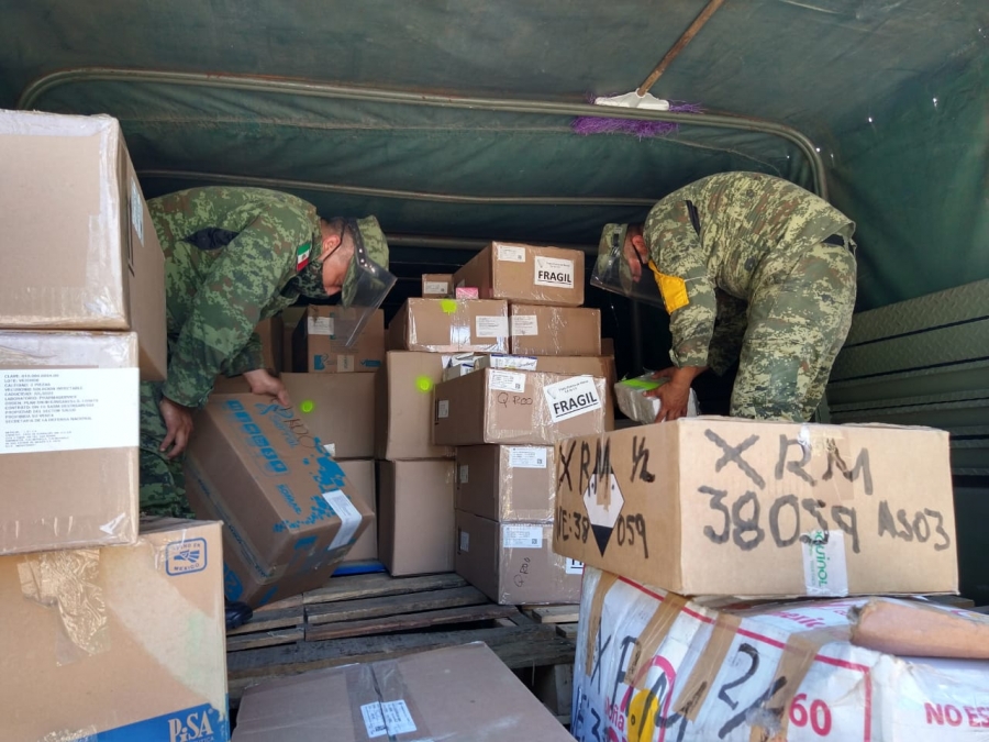 Ayer, elementos del Ejército y Fuerza Aérea Mexicanos, trasladaron de la Ciudad de México a Mérida, diversos materiales, equipo, medicamentos e insumos médicos, para el equipamiento de las instalaciones militares pertenecientes a la X Región Militar empeñadas en atender la contingencia sanitaria.