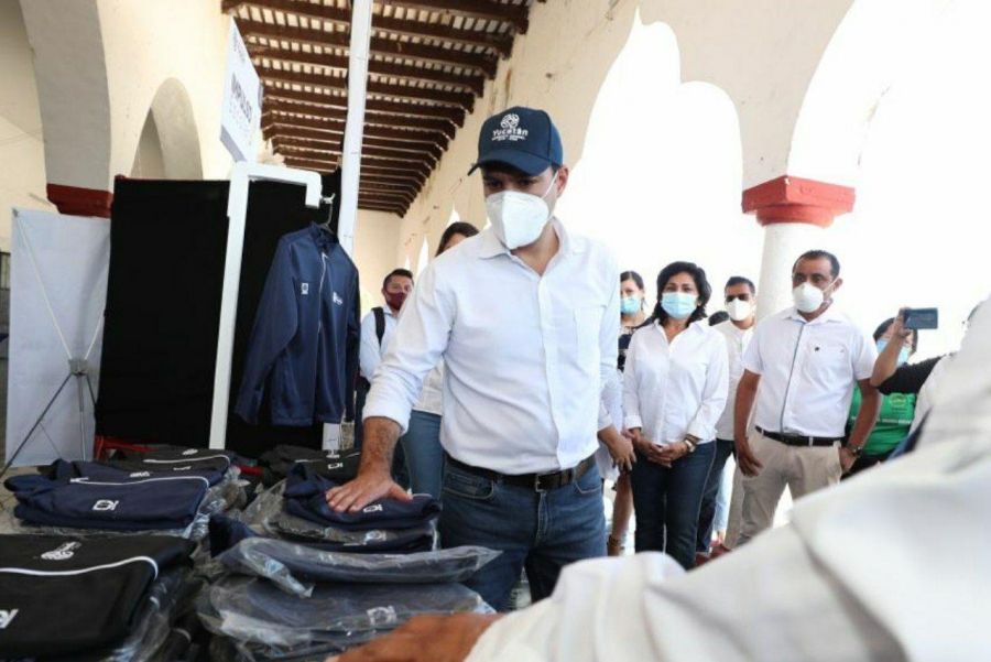 Acompañado de profesores, la alcaldesa anfitriona, Neyda Heredia Leal y la titular de la Secretaría de Educación del Gobierno del Estado de Yucatán (Segey), Loreto Villanueva Trujillo, el mandatario yucateco insistió en su llamado a evitar las reuniones masivas durante las celebraciones por las fiestas decembrinas, para evitar que los contagios del coronavirus incrementen, se ponga en riesgo la capacidad hospitalaria y se detenga el proceso de reactivación económica.