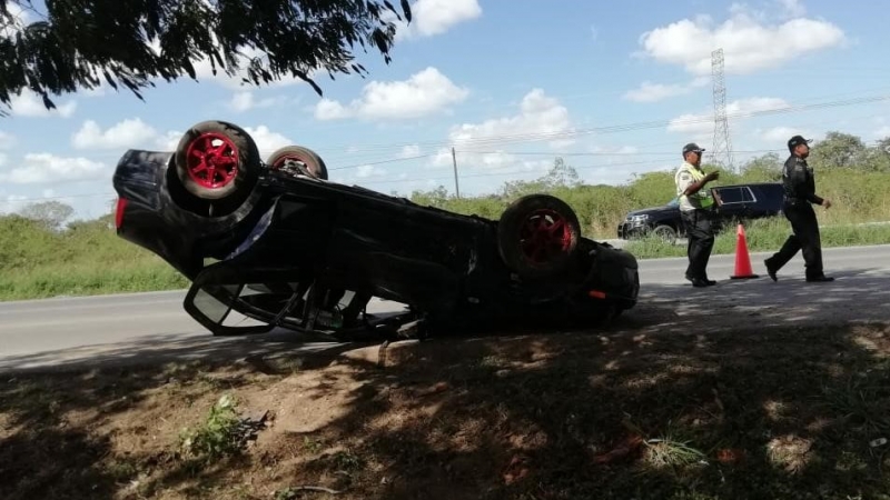 Por intentar incorporarse sin el debido cuidado a la carretera Umán-Mérida, el chofer de una camioneta de carga de la empresa Acerofertas terminó con un motociclista lesionado y ensartado en una de sus llantas.