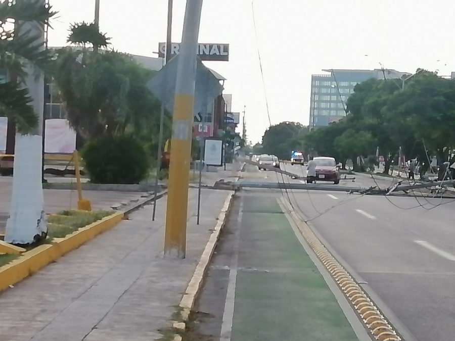 Cerca de las tres y media de la mañana, la pesada unidad transitaba sobre prolongación Paseo de Montejo, a la altura de una conocida tienda de artículos para el hogar, cuando su caja se atoró con las líneas de energía eléctrica, las cuales jaló hasta arrancar tres postes, dos que se encontraban sobre el carril de sur a norte y uno más en el contrario.