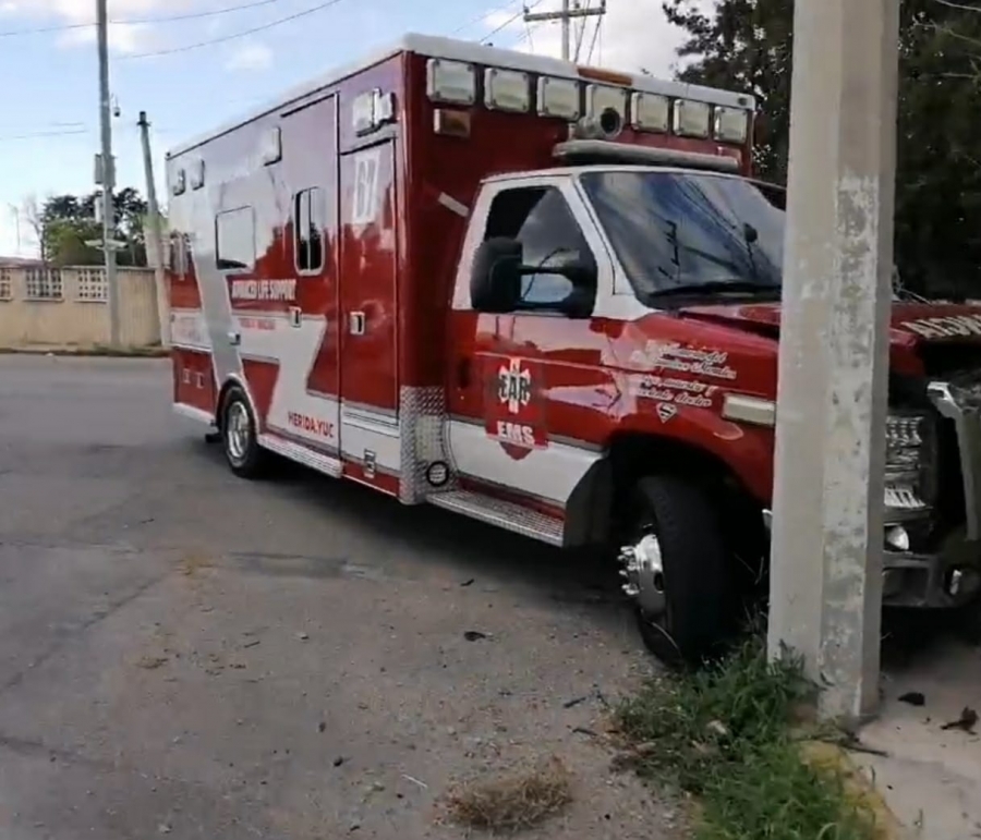 La colisión se registró en el cruce de las calles 19 con 20 del mencionado lugar, cuando una joven conductora, de nombre Daniela, manejaba su camioneta Mazda y embistió a la ambulancia conducida por un paramédico.