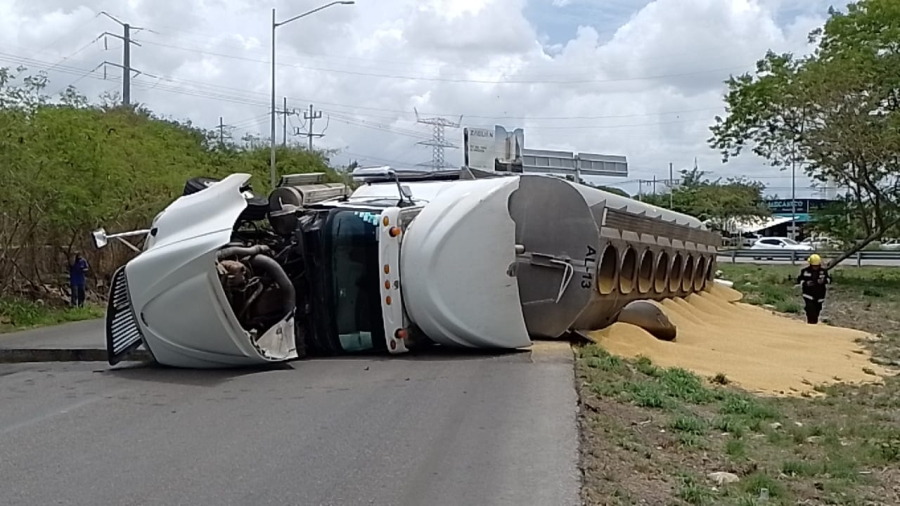 Debido al “volantazo” el tráiler se volcó hacia uno de sus costados, lo que ocasionó que parte de su carga quede regada en el lugar.