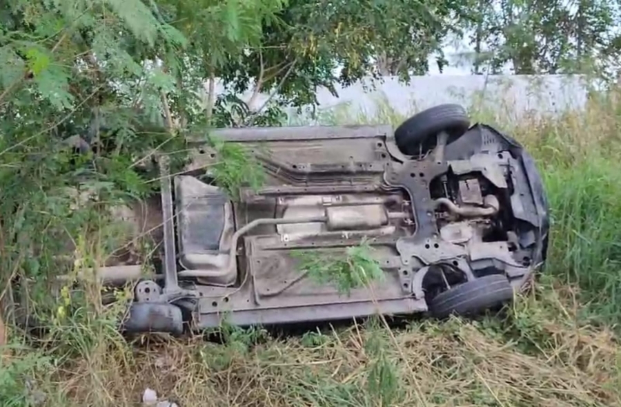 Finalmente, el auto quedó volcado dentro del monte del lado izquierdo; como pudo la conductora salió y pidió apoyo a las autoridades.