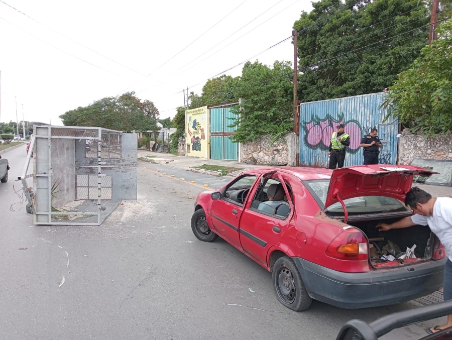 Según testigos al pasar de manera imprudente un paso peatonal el remolque que jalaba una camioneta se soltó, lo que provoco que se impactará contra un automóvil Ford Fiesta placas YZR-841-E.