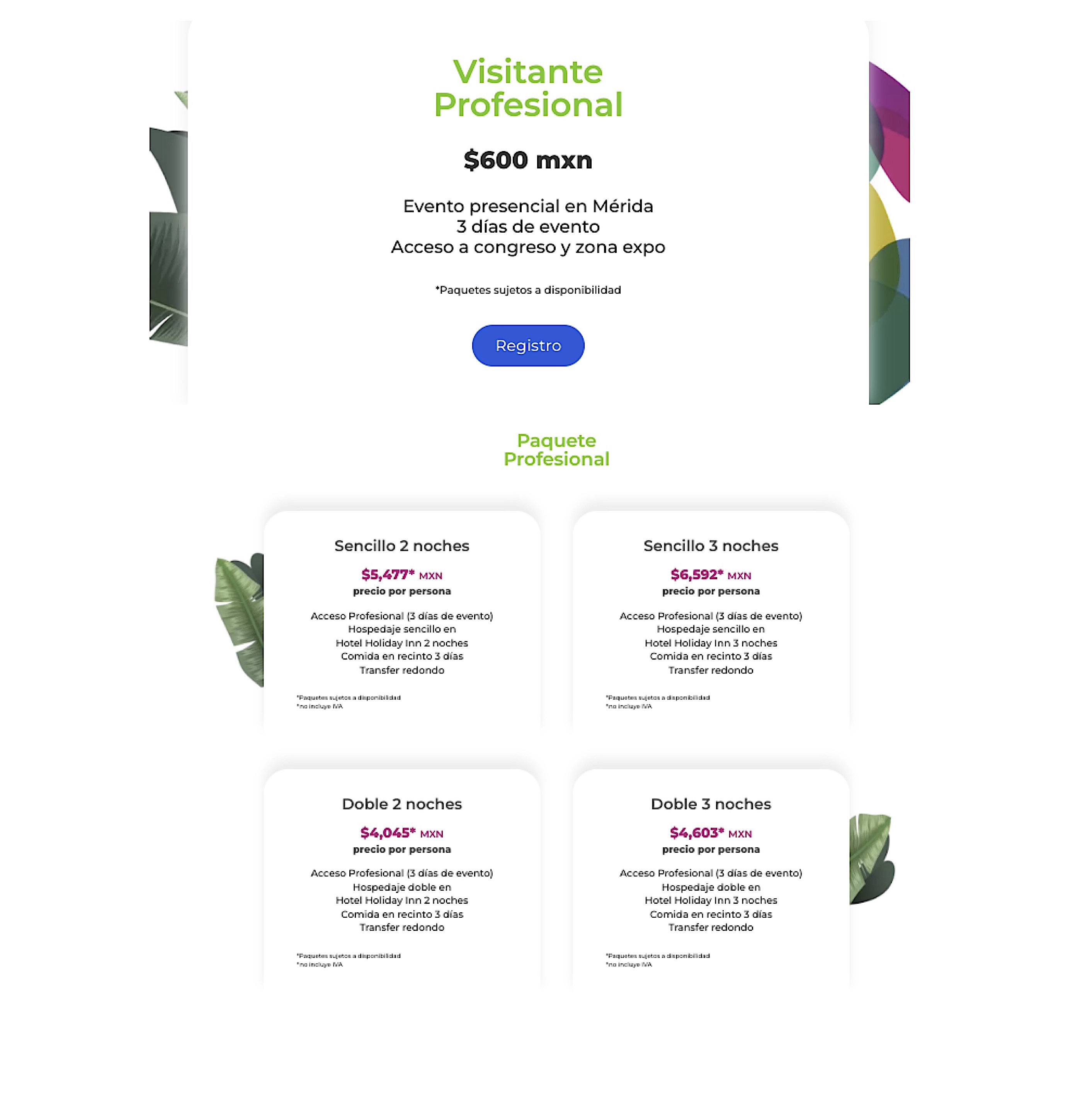 Al menos para la Feria Biosphera se ofertaron paquetes por parte de la empresa que van desde los 600 pesos hasta los 4 mil 600, estos últimos incluye hotel y traslado, según se pudo constatar en la dirección web https://biosphera.bio/