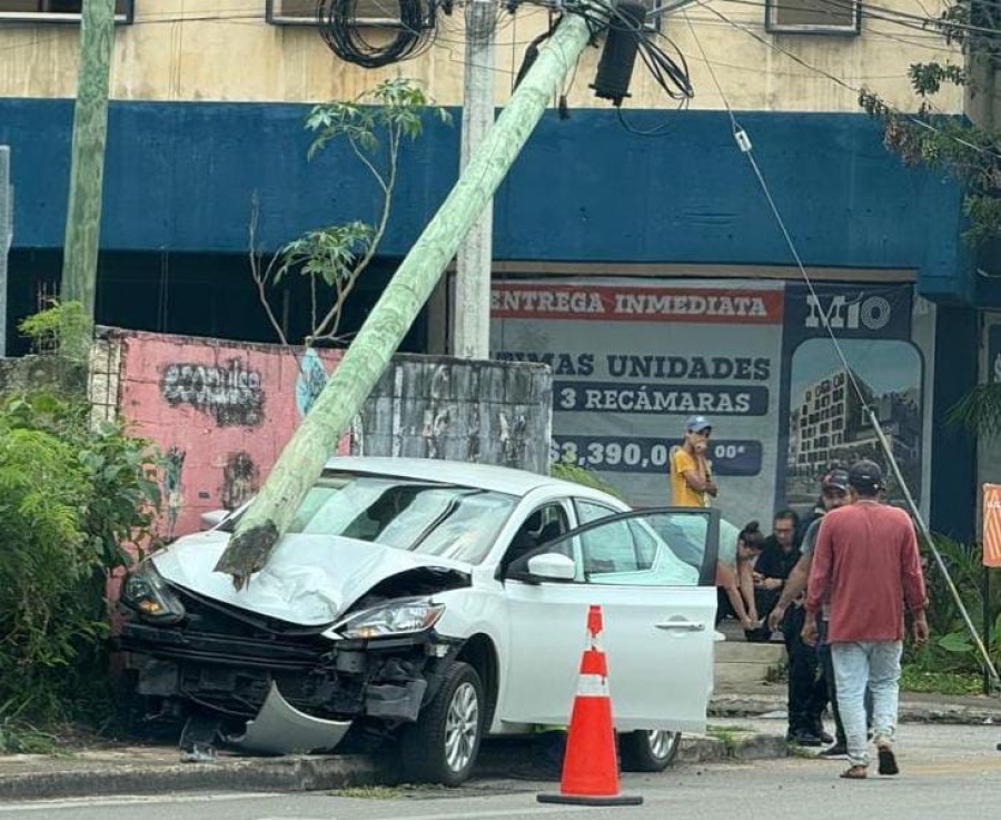 Tras el impacto, la conductora continuó su trayectoria hasta chocar contra un poste, el cual quedó partido a la mitad.