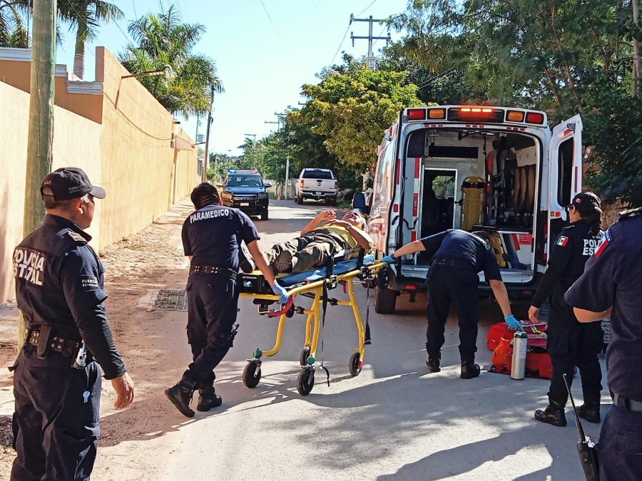 Su recorrido terminó en el cruce de la calle 25 por 14, donde se estacionó sumamente nervioso y con la presión arterial elevada. Elementos de la Secretaría de Seguridad Pública lograron ubicarlo y pidieron apoyo médico, ya que el hombre estaba al borde del desmayo. Paramédicos lo estabilizaron y lo recostaron en la camilla dentro de la ambulancia para que recuperara el aire.