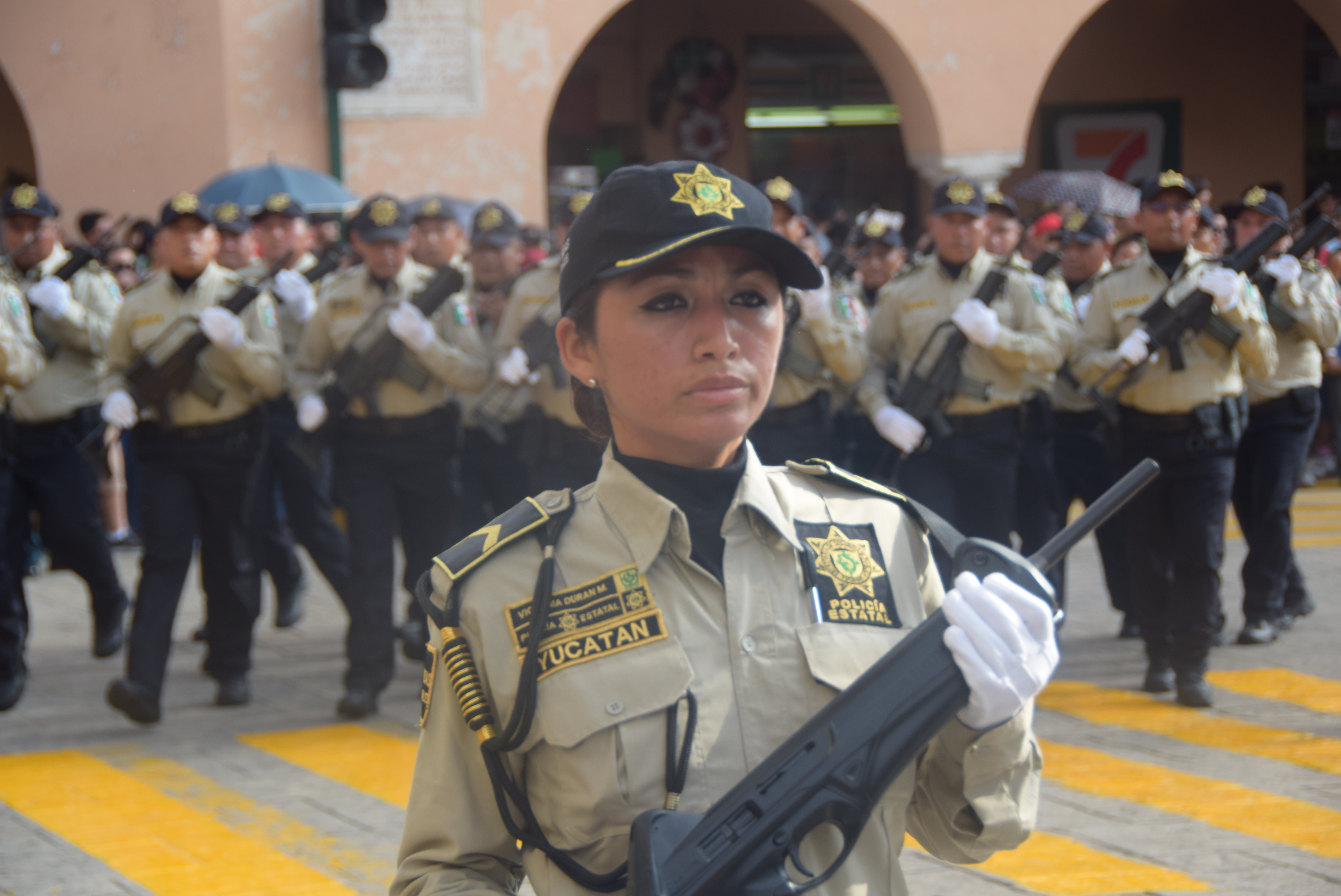 Con motivo de la efeméride, 673 elementos del Ejército Mexicano, 169 de la Secretaría de Marina, 86 de la Policía Federal, 421 del contingente mixto, mil 192 integrantes de la SSP del estado y 225 de la Policía Municipal de Mérida marcharon con gallardía. Asimismo, se exhibió un total de 194 vehículos de diferentes características, 70 motocicletas, cuatro embarcaciones y 30 binomios caninos.