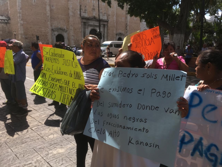 “Señor gobernador Mauricio Vila, venimos a intentar hablar con usted para pedirle que nos apoye para que el ingeniero Pedro Solís Millet nos page nuestros terrenos que esta usando como sumidero”, señaló uno de los voceros de los inconformes quien con micrófono en mano informaba a la ciudadania del porque de la protesta.