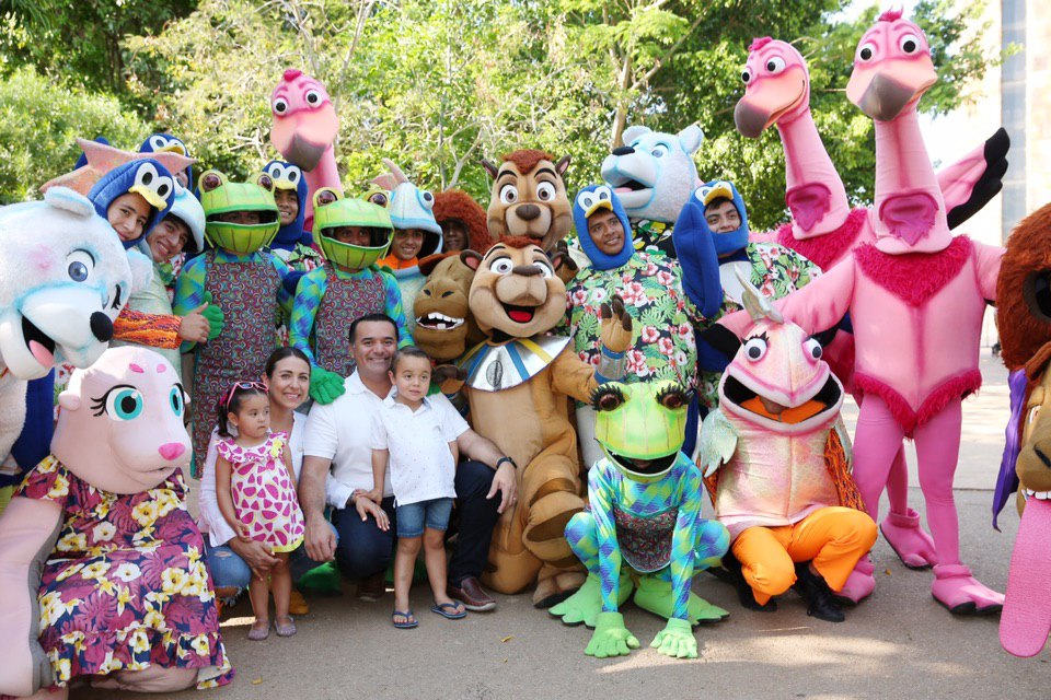 Cientos de familia llegaron al Parque Zoológico Bicentenario Animaya, donde también acudió el alcalde Renán Barrera Concha acompañado de su esposa Diana Castillo Laviada, presidenta del DIF municipal y sus hijos Renán y Daniela.
