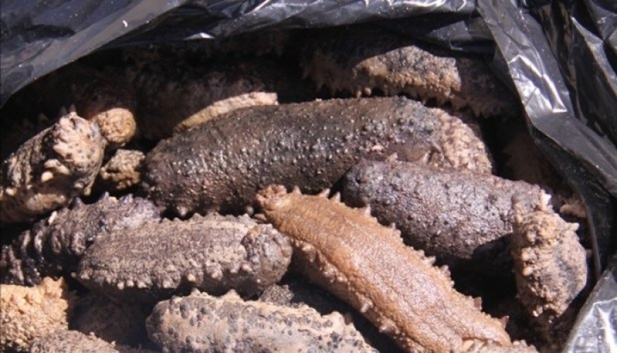 En lugar, se aseguró un total de tres toneladas 463 kilos 800 gramos del producto marino en veda “pepino de mar”, un vehículo y diversos objetos del delito.