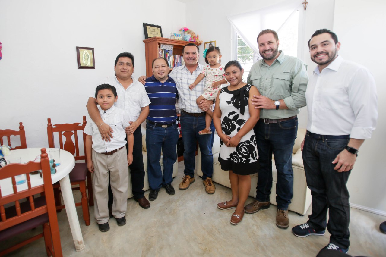 Como parte de las actividades del día, el Presidente Municipal acudió a la calle 4E por 13 de esa comunidad donde entregó dos acciones de viviendas completas a las señoras Yami Georgina Cocom Balam y Holivieth del Carmen Tepal quienes junto con sus familias agradecieron este apoyo que ahora le garantiza un techo y un patrimonio seguro.