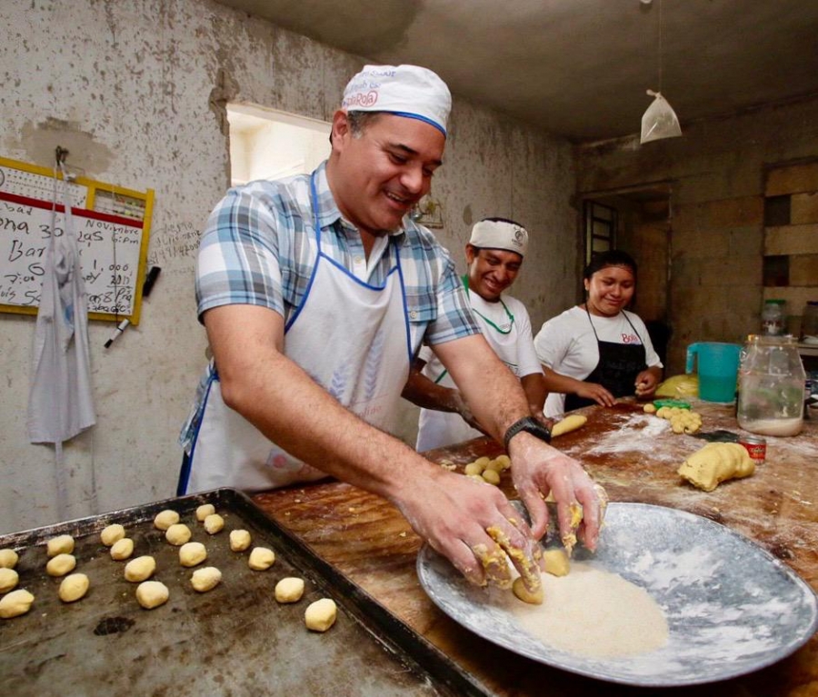 Durante la elaboración de los polvorones, el concejal rememoró que antes de iniciar su carrera política también fue banquetero, por lo que tiene conocimiento general también de panificación y sabe el tiempo que hay que dedicarle al elaborar el producto.
