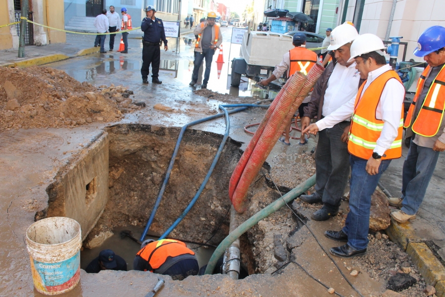 El director de la dependencia, Sergio Chan Lugo, informó que desde el 12 de diciembre pasado se detectó una fuga en una tubería subterránea de 35 pulgadas sobre la calle 64, cuya antigüedad es de 60 años.