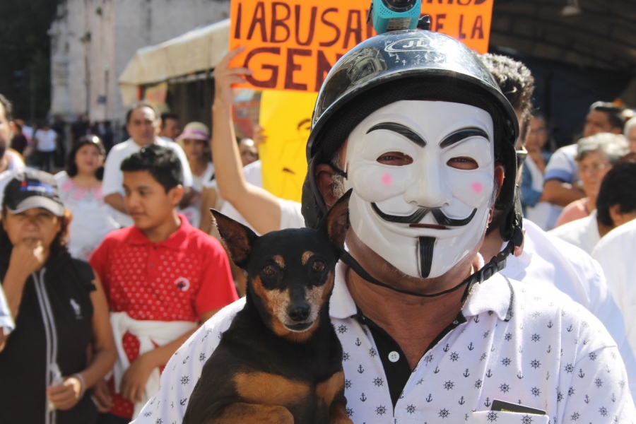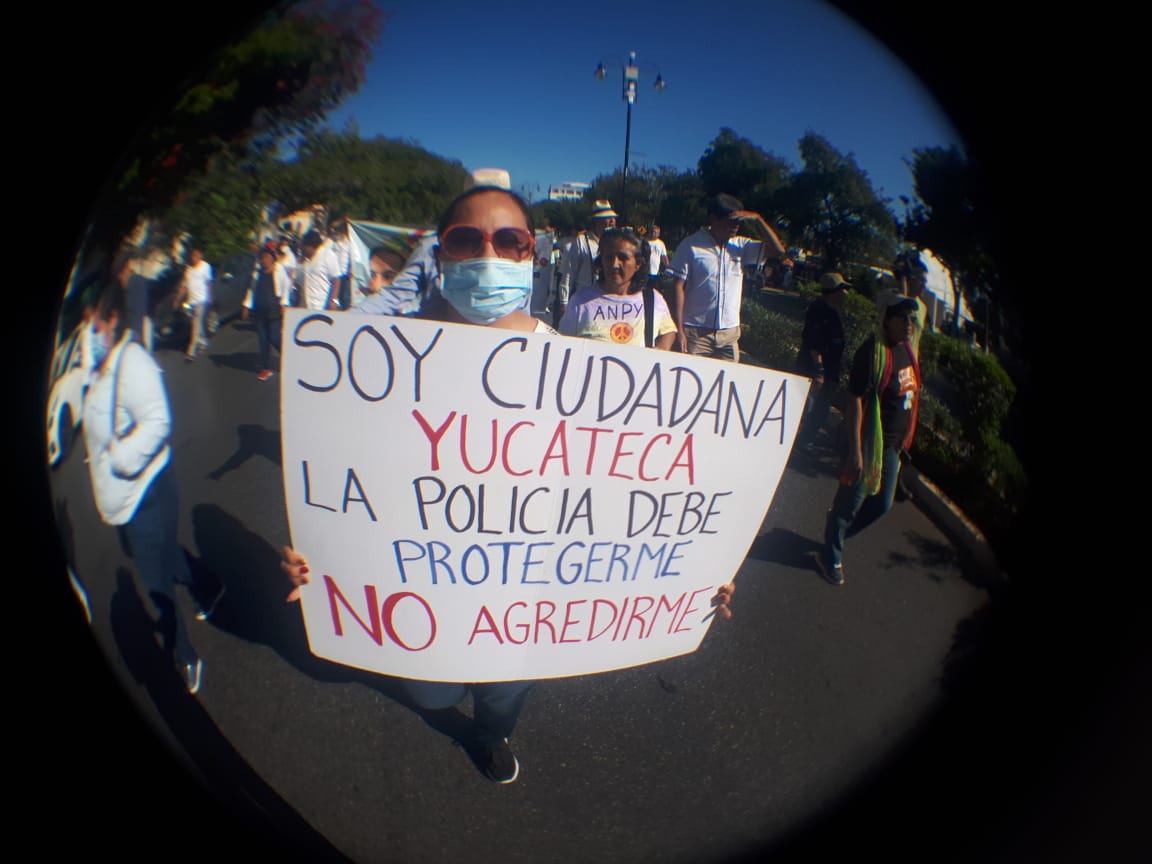 La movilización fue convocada para protestar en silencio por la represión que grupos de ciudadanos organizados sufrieron el pasado 19 de enero, cuando al intentar manifestarse en el marco del informe de gobierno de Mauricio Vila Dosal, fueron repelidos por policías estatales con una lata de gas lacrimógeno.