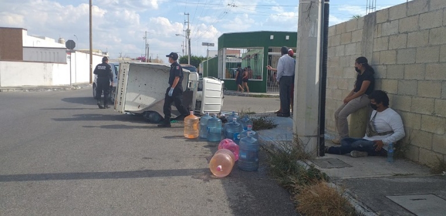 La conductora iba en un automóvil Sonic, con placas de circulación ZBJ-305-A, sobre la calle 63, pero al llegar a la esquina de 84, no se percató de la señal de alto e impactó al mototaxi habilitado para distribuir garrafones del vital líquido.