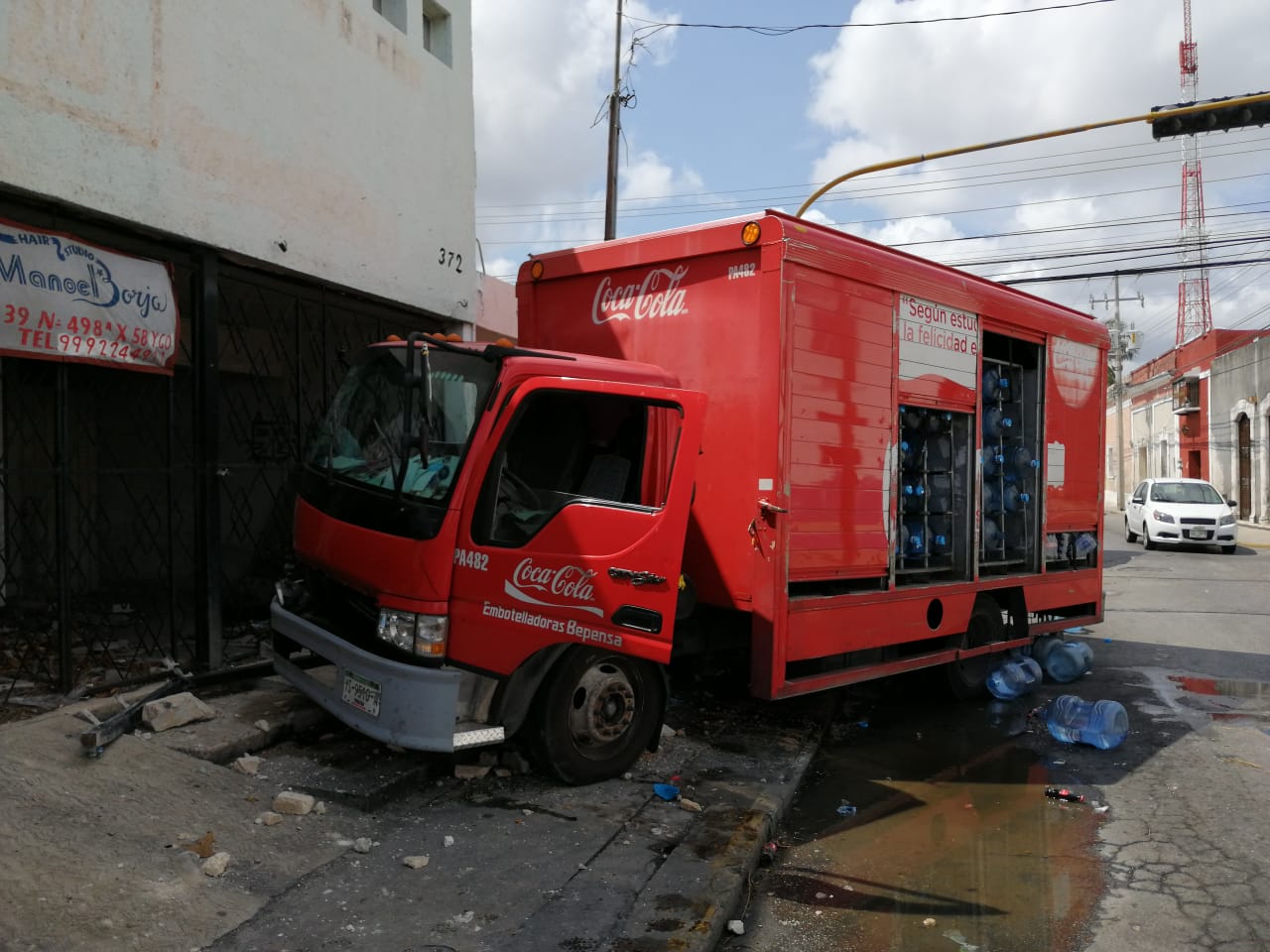 Por esa esquina circulaba un camión de la empresa Coca-Cola que transportaba un agua purificada, el cual fue impactado por la unidad que transportaba el material para la construcción.